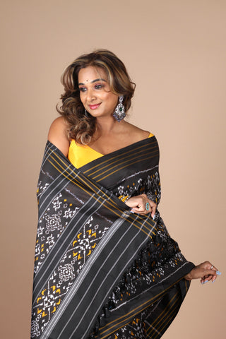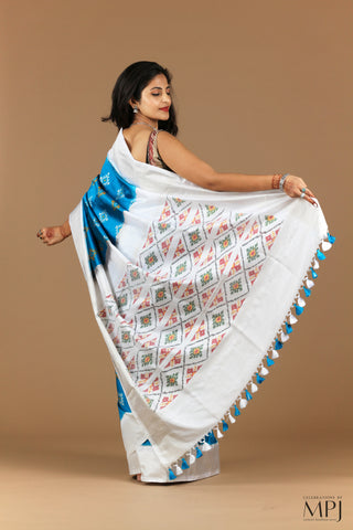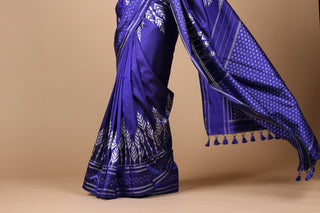 Cobalt Blue Handloom Silk Single Ikkat Pochampally Saree with Stitched Blouse