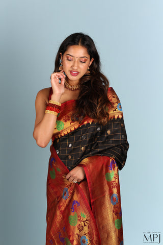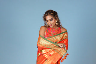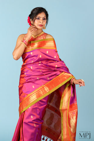 Maharashtrian Pure Silk Handloom sarees with shimmering drapery.