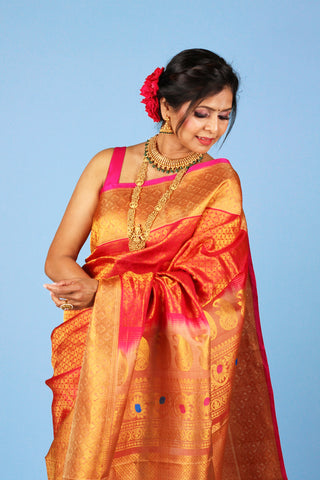 "Bought this gorgeous pure silk Kanjivaram Saree from Celebrations by MPJ. The feel and quality of the saree is exceptional. Monika takes time to understand your needs and your likings and will showcase sarees that you would fall in love with."- Leena from Atlanta